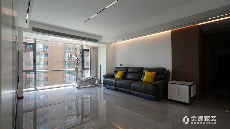 整體色調(diào)以黑白灰為主,簡潔明快,沒有過多的裝飾,體現(xiàn)了現(xiàn)代意式風(fēng)格的特點。客廳的布局開闊,家具的選擇也以簡約為主,如黑色皮質(zhì)沙發(fā)、簡潔的電視柜等,都符合現(xiàn)代人的審美。