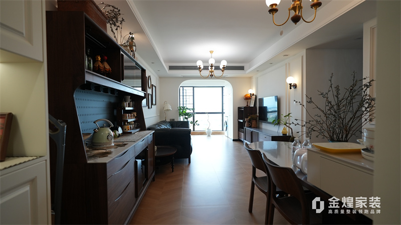 從客廳的深色皮質(zhì)沙發(fā)、木質(zhì)電視柜,到餐廳的玻璃餐桌、深色餐邊柜,再到臥室的白色衣柜、深色木質(zhì)床,都體現(xiàn)了中古風(fēng)格對材質(zhì)和色彩的選擇偏好。