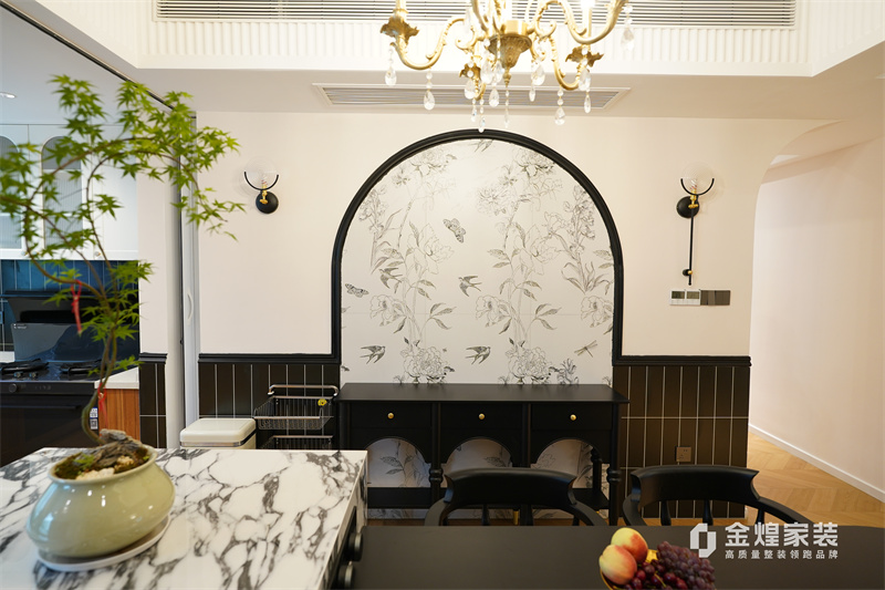 從客廳的裝飾細(xì)節(jié)可以看出,如帶有精致雕花的天花板、華麗的吊燈、優(yōu)雅的家具線條以及整體柔和的色調(diào),都透露出法式風(fēng)格的浪漫與典雅。