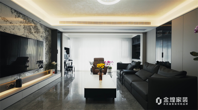 電視背景墻的大理石紋理、簡潔的家具線條以及精心布置的燈光設(shè)計,都體現(xiàn)了現(xiàn)代輕奢風(fēng)格的特點。同時,通過添加一些鮮花和裝飾品,增加了空間的溫馨感和生活氣息。