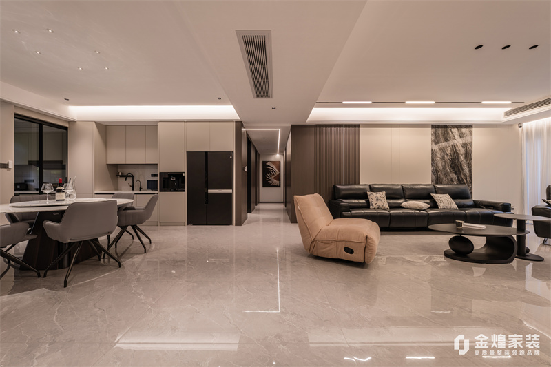 本案整體以意式輕奢為主基調(diào),去客廳化,結(jié)合輕奢主義打造意式簡約空間,整體運(yùn)用了木飾面、硬包以及巖板等不同材質(zhì)的碰撞,空間沉穩(wěn)大氣,質(zhì)感十足。