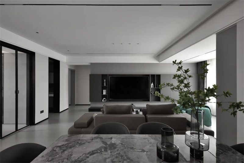 本案以現(xiàn)代極簡為設(shè)計(jì)語言,摒棄冗余裝飾,用純粹的線條、克制的色彩與精煉的材質(zhì),構(gòu)建出一個(gè)靜謐而有力量的空間。黑白灰為主調(diào),輔以一抹綠意點(diǎn)綴,既體現(xiàn)秩序之美,又不失溫度與呼吸感。從空間布局到細(xì)節(jié)處理,每一處都遵循“少即是多”的原則,讓居住回歸本質(zhì)——簡潔、從容、自由。