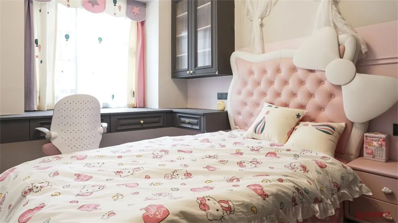 粉色裝飾的女孩房,為孩子構(gòu)筑一個(gè)夢(mèng)幻的空間,趣味的裝飾,充滿著自由的想象力,承載著孩子天真浪漫的夢(mèng)想。