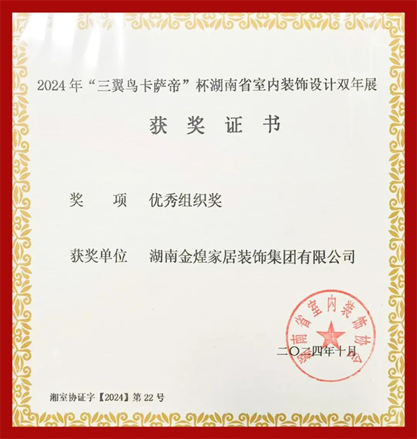 日前,由湖南省室內裝飾協(xié)會主辦、協(xié)會設計專業(yè)委員會、各市州室內裝飾協(xié)會和相關院校承辦,海爾智家湖南分公司協(xié)辦的2024年 “三翼鳥卡薩帝”杯湖南省室內裝飾設計雙年展頒獎典禮在長沙舉行。金煌滿載而歸,共斬獲3個金獎、2個銅獎、1個優(yōu)秀獎。