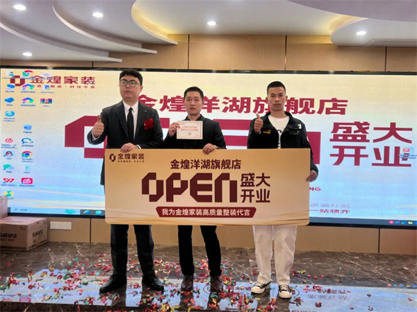11月23日,金煌家裝長(zhǎng)沙洋湖旗艦店禮花綻放,賓客盈門,舉行了盛大開業(yè)儀式。湖南省室內(nèi)裝飾協(xié)會(huì)會(huì)長(zhǎng)李金龍,金煌家裝大區(qū)總裁張聰、洋湖旗艦店總經(jīng)理伍金花等出席典禮,與現(xiàn)場(chǎng)嘉賓共同分享喜悅,并送出總裁簽售大禮包,感恩回饋廣大新老客戶。