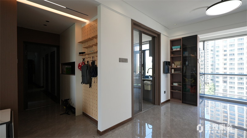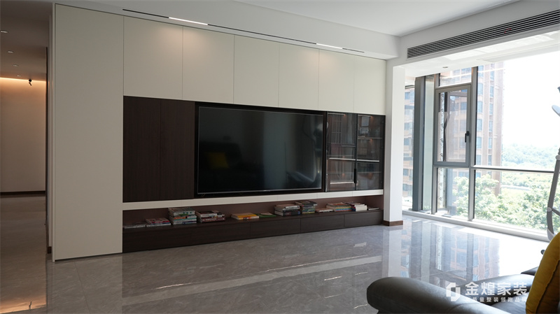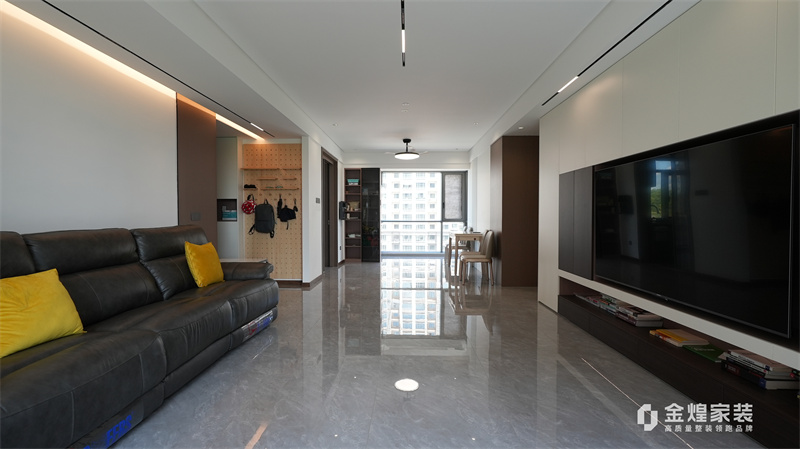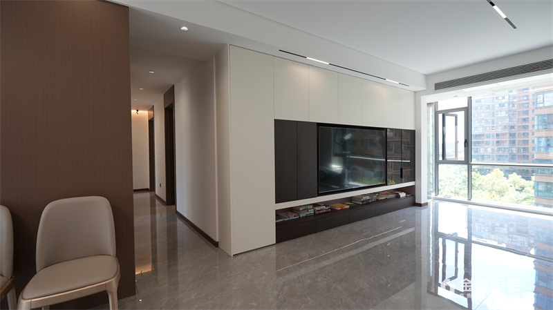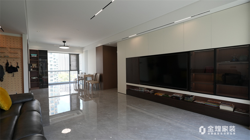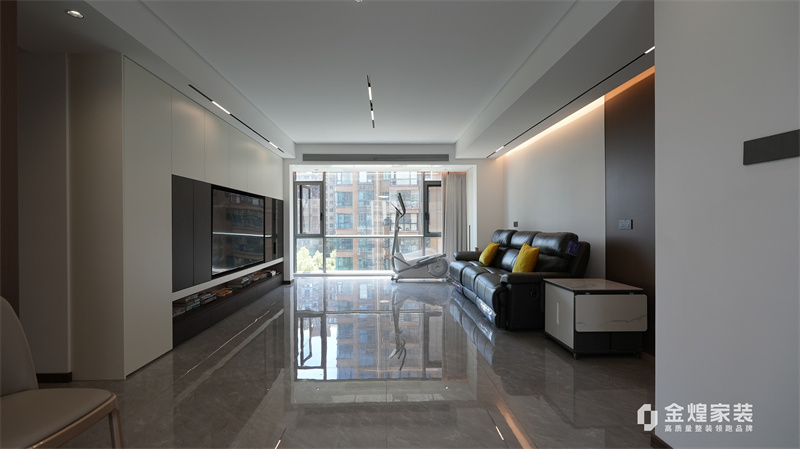 整體色調(diào)以黑白灰為主,簡潔明快,沒有過多的裝飾,體現(xiàn)了現(xiàn)代意式風(fēng)格的特點。客廳的布局開闊,家具的選擇也以簡約為主,如黑色皮質(zhì)沙發(fā)、簡潔的電視柜等,都符合現(xiàn)代人的審美。
