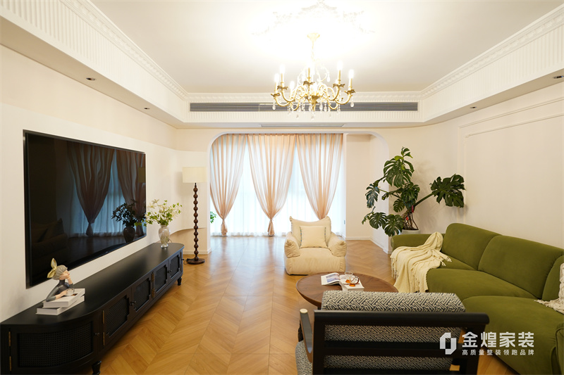 從客廳的裝飾細(xì)節(jié)可以看出,如帶有精致雕花的天花板、華麗的吊燈、優(yōu)雅的家具線條以及整體柔和的色調(diào),都透露出法式風(fēng)格的浪漫與典雅。