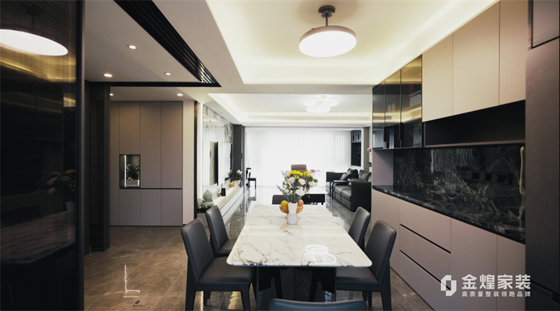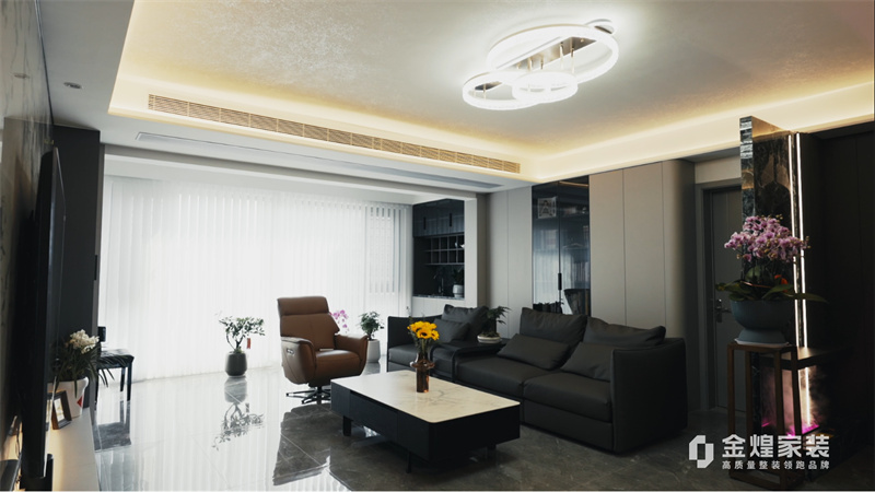 電視背景墻的大理石紋理、簡潔的家具線條以及精心布置的燈光設(shè)計,都體現(xiàn)了現(xiàn)代輕奢風(fēng)格的特點。同時,通過添加一些鮮花和裝飾品,增加了空間的溫馨感和生活氣息。
