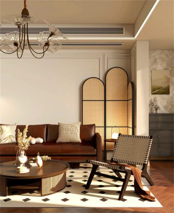 美拉德風(fēng)的核心是暖色調(diào),關(guān)鍵色是紅棕色(給人一種溫暖、高貴的感覺),最適合用于表現(xiàn)復(fù)古、中古情調(diào),如局部配以跳躍的顏色,就會更有靈魂,比如鮮亮的綠植、抱枕、燈飾、屏風(fēng)……像壁爐里的火苗一樣能成為點(diǎn)睛之筆。
