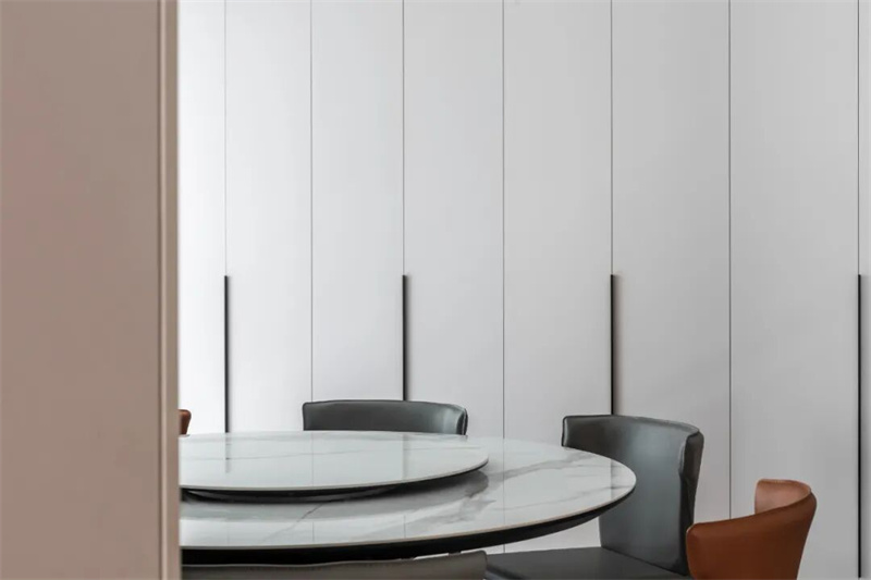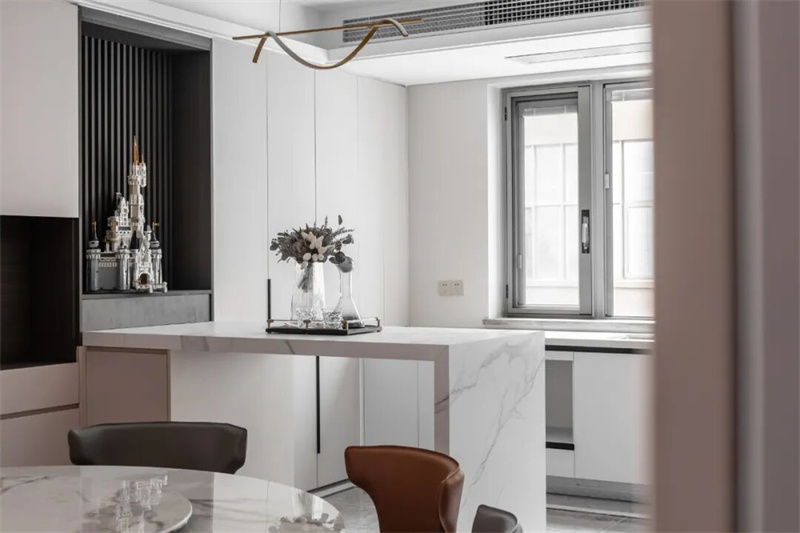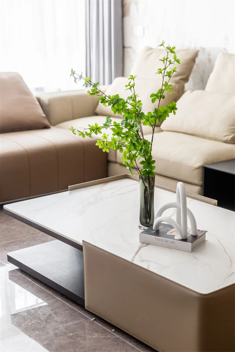 客廳擁有優(yōu)秀的采光條件,設(shè)計(jì)師選擇輕薄的窗簾布料,以確保陽光可以自由地灑進(jìn)室內(nèi),最大限度地引入自然光線。這樣的設(shè)計(jì)不僅增加了室內(nèi)的明亮度,還讓客廳與室外景色相融合,營造出一種開放和通透的感覺。