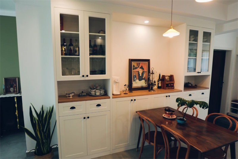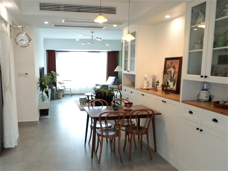 本案客餐廳以灰、白、果綠為主,自然、安靜、舒適,整體硬裝少而精,軟裝+綠植豐富整個空間,讓房子生動起來,像植物園一樣有生機(jī),更讓整個空間鮮活起來。每次回到家都是一次心靈的放松,沙發(fā)背景采用一組簡約美觀的裝飾畫,配上清新的綠植,點(diǎn)亮了空間的文藝與清新。