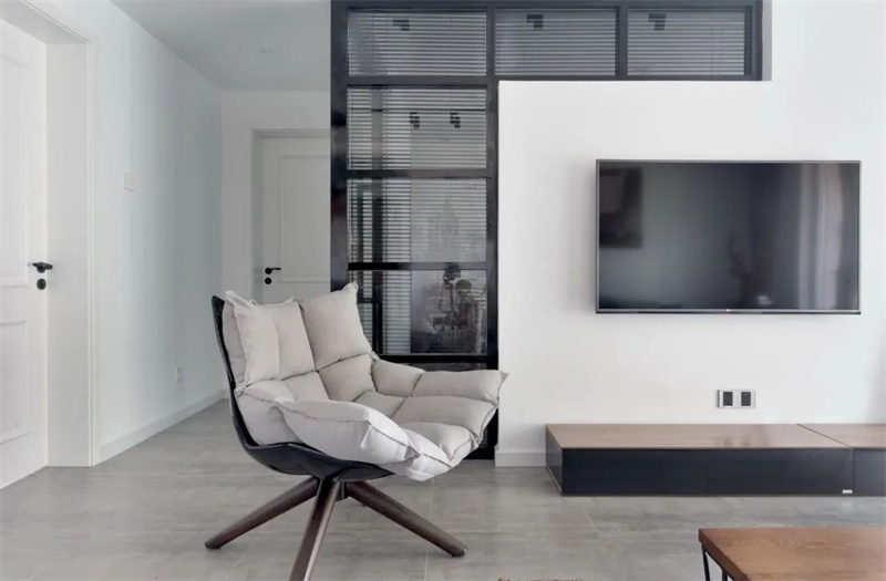 白色的電視墻+壁掛電視機(jī),小面積的電視墻也顯得簡(jiǎn)約而大方。