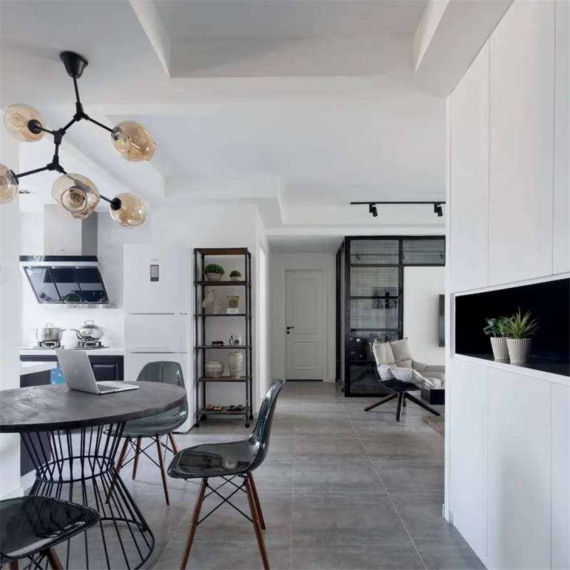 本案以灰色地磚和白色墻面為主要色調(diào),創(chuàng)造了一個(gè)清新、溫馨的居住空間。綠植、藤編等大自然的元素也被用來裝飾室內(nèi)空間,讓整個(gè)家更加貼近自然,呈現(xiàn)出一個(gè)治愈系之家的感覺。
