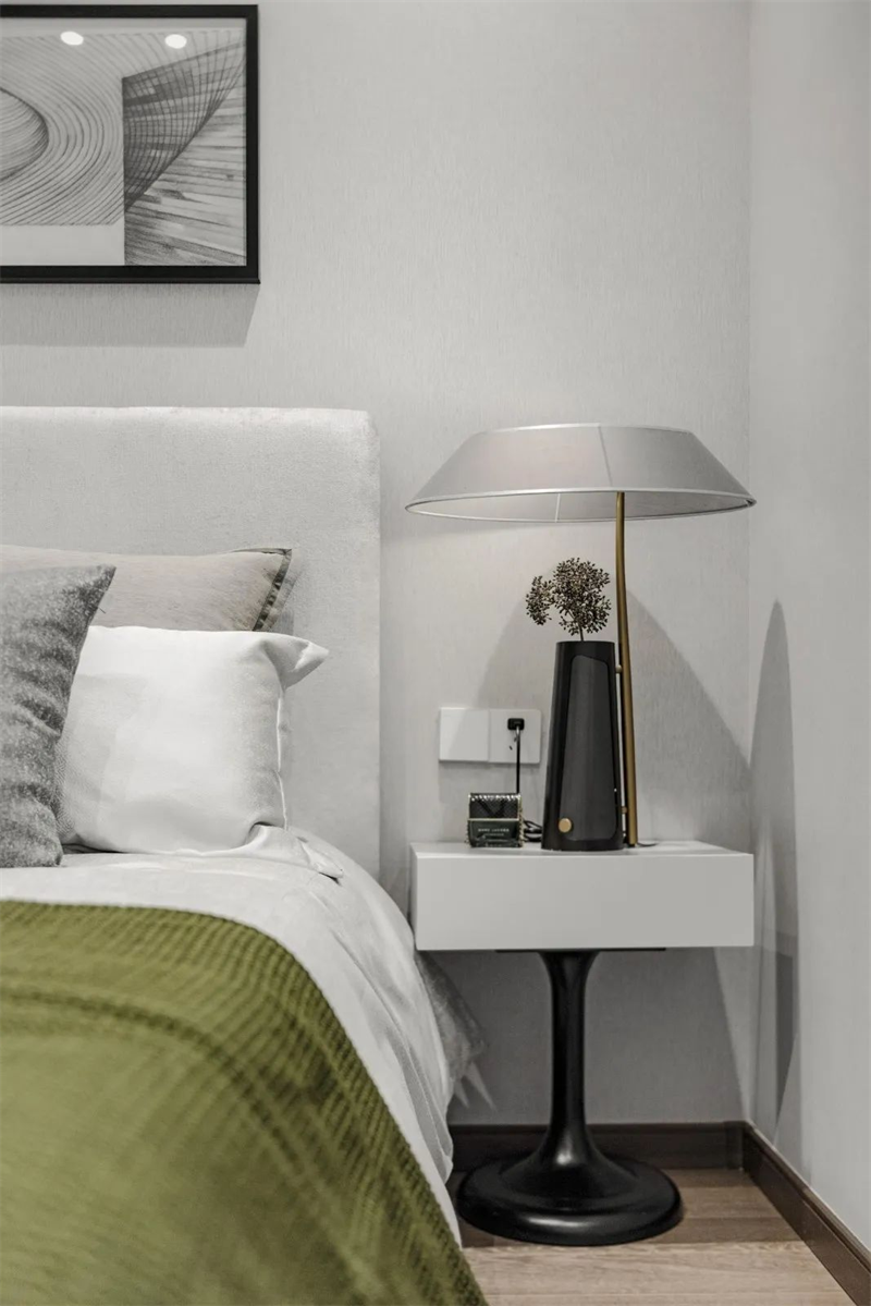 次臥設(shè)計(jì)同樣精致考究,精選舒適柔軟的床品和簡約裝飾畫,營造出輕松愜意的睡眠空間。柔和的色調(diào),讓人感到寧靜和舒緩,為身心帶來最佳的休息體驗(yàn)。
