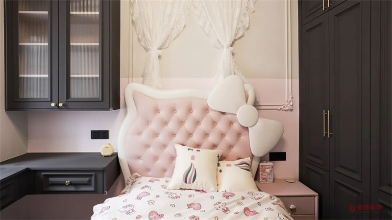 粉色裝飾的女孩房,為孩子構(gòu)筑一個(gè)夢(mèng)幻的空間,趣味的裝飾,充滿著自由的想象力,承載著孩子天真浪漫的夢(mèng)想。