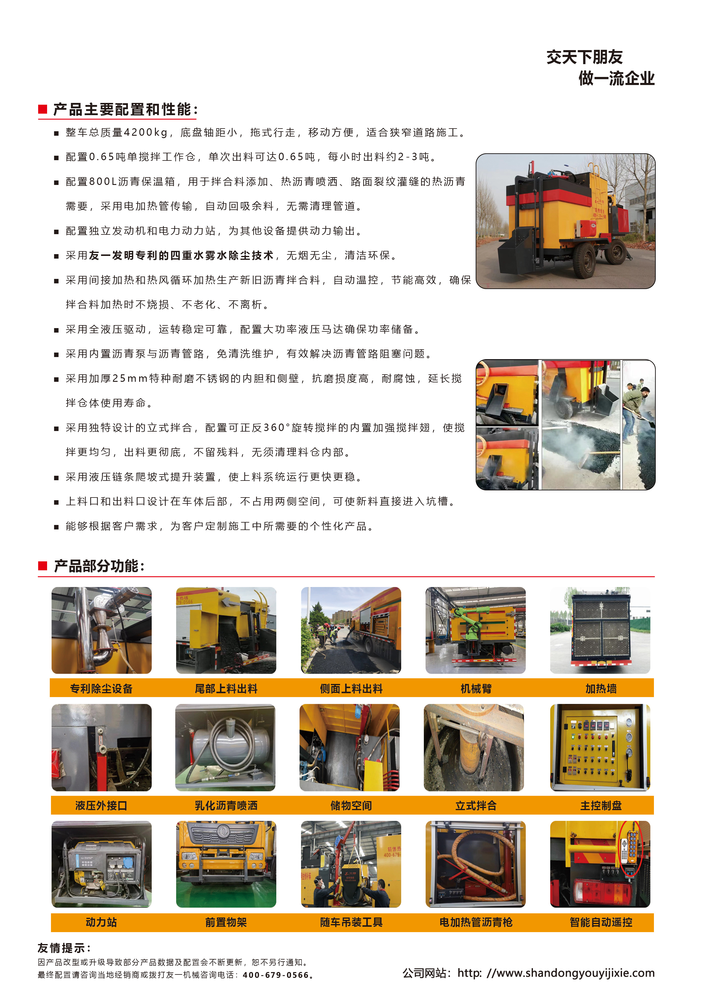 山東友浚智能裝備有限公司主要生產(chǎn)路面綜合養(yǎng)護(hù)車、瀝青路面養(yǎng)護(hù)車、道路養(yǎng)護(hù)車、瀝青熱再生修補(bǔ)車、瀝青灌縫機(jī),專注、專業(yè)于道路養(yǎng)護(hù)機(jī)械設(shè)備與養(yǎng)護(hù)材料的生產(chǎn)和研發(fā)。